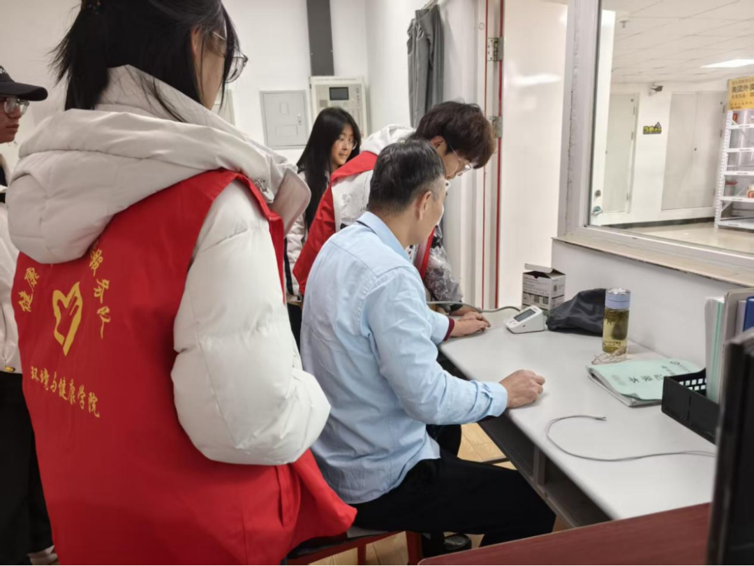 秋意正浓,温情正当时。在这个金风送爽、落叶纷飞的季节,校园里不仅有斑斓的秋景,更有一抹跃动的“志愿红”悄然温暖着每一个角落。11月15日健康中国志愿服务队带领一群充满朝气的志愿者走进宿舍楼,开展“秋日关爱·为宿管量血压”公益行动,用专业与温情,为日夜守护我们生活的宿管阿姨叔叔们送上一份贴心的健康关怀。 宿管老师是校园生活的隐形守护者。他们不站在讲台前,却用日复一日的坚守,为我们撑起安全、有序的生活环境。志愿者们开展此次活动,不只是为了健康服务,更是为了表达一份感恩,唤醒一份关注。 在测量活动中,志愿者们用热情有爱的话语表达对宿管老师身体健康的关爱,阳光洒在他们的马甲上,也照亮了宿管老师脸上的笑容。这一刻,没有身份的界限,只有人与人之间最真挚的连接。这不仅是一次简单的志愿服务,更是一场关于尊重、理解与爱的双向奔赴。 在这个收获的季节里,收获的不仅是健康的提醒,更是心灵的触动。愿每一位默默奉献的宿管工作者,都能被岁月温柔以待,也愿这份志愿精神,如秋叶般静美,深深扎根于校园的每一寸土地。这个秋天,因爱而温暖。