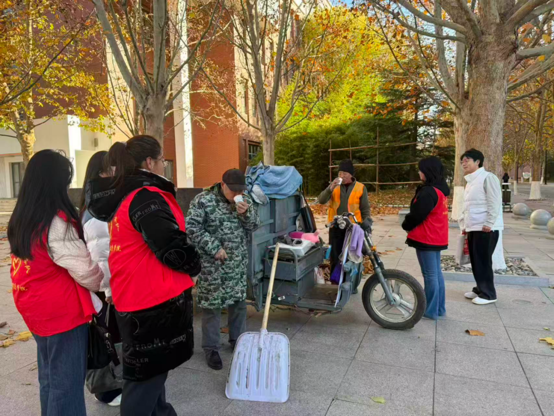 深秋时节,凉意渐浓,校园里的梧桐树已披上金装,而一抹抹亮丽的“志愿红”却为这个略显萧瑟的季节注入了融融暖意。近日,由健康中国志愿服务队发起的“一杯热茶,温暖一秋”爱心公益活动在校园内温情上演,志愿者们用一杯杯热气腾腾的香茶,向默默奉献的校园守护者们送上了秋日里最真挚的问候。 活动当日,志愿者们细心地将冲泡好的热茶分装好,热情地递给坚守在岗位上的环卫工人和安保人员。志愿者们的热情服务与无私奉献,完美诠释了“奉献、友爱、互助、进步”的志愿精神。 “叔叔、阿姨,天气冷,喝杯茶暖和一下吧!”一声声简单的问候,伴随着一杯杯暖手的热茶,传递到校园守护者们的手中。这杯茶,不仅驱散了户外工作的寒冷,更是一份来自学生的尊重与关怀,成为了连接彼此情感的温暖桥梁。 组织这次活动是希望用这种朴素的方式,表达对平凡岗位上工作者们的感谢,同时也唤醒更多同学的社会责任感。一杯热茶,暖的是手,传的是情。这次活动不仅温暖了秋日校园,更在同学们心中播下了感恩与善意的种子,让志愿服务的理念随着茶香,流淌在校园的每一个角落。