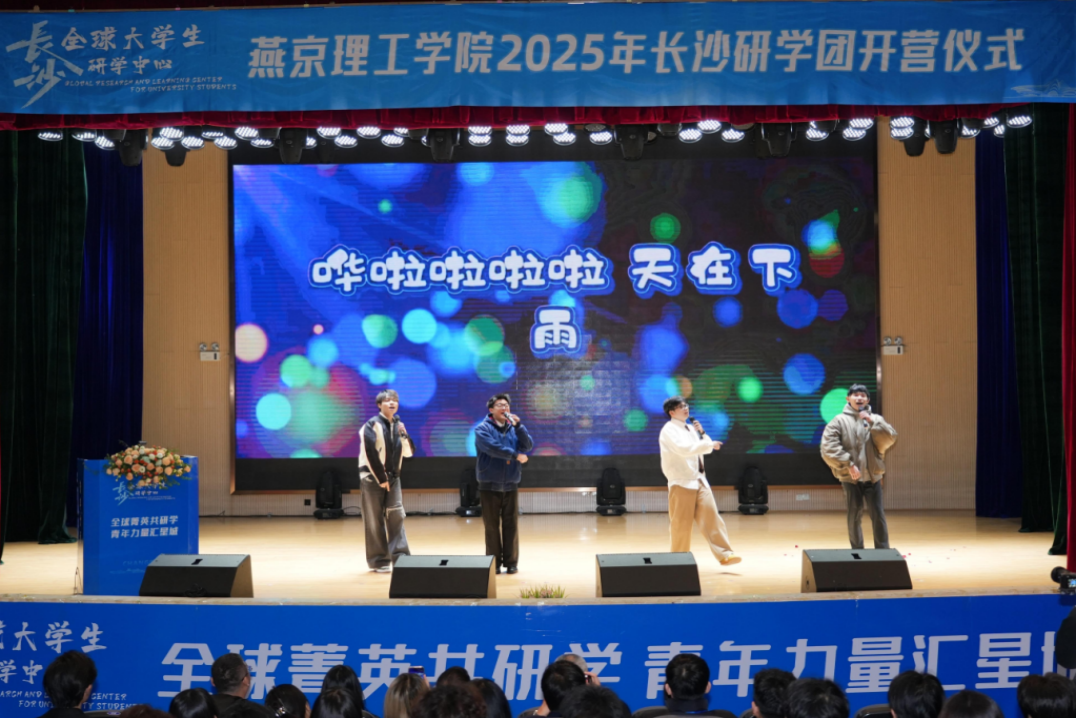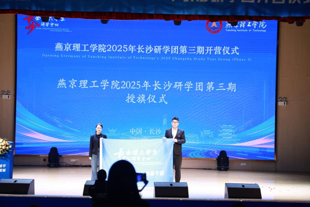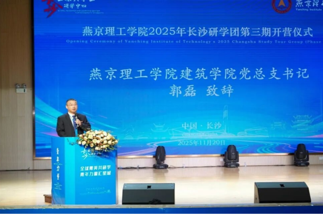 湘楚寻梦 世界启航 燕理学子长沙研学三期团扬帆启航 当教室的围墙被长沙的烟火气温柔推开,书本里沉淀的湘楚历史、厚重文化与灵动创意,便化作了触手可及的温度、眼见为实的鲜活。研学从来不止是眼界的拓宽,更是心灵与世界的深度对话。11月20日,以“湘楚寻梦,世界起航”为主题的燕京理工学院2025年长沙研学第三期开营仪式,在报告厅隆重启幕。 打破课堂壁垒 解锁育人新形态 活力满满的《爱乐之城》开场舞惊艳亮相,灵动舞姿伴着跃动节拍,将学子对长沙的热切期待尽情释放,为开营仪式拉开了精彩序幕。本次仪式特别邀请长沙地方文化学者、原市委党校兼职教授顾庆丰先生亲临现场,与师生一同见证这场奔赴湘楚的青春之旅。 以开场舞《爱乐之城》拉开开营仪式帷幕 “课堂之外有天地,书本之外有真知,研学为成长开辟了广阔延伸空间。”本次研学活动东道主、全球大学生研学中心(长沙)执行主任易旸在致辞中,以“长沙之窗”为喻,向燕理学子热忱邀约:“期待大家以这座城市为文化坐标,触摸岳麓书院的千年底蕴,体悟非遗技艺的鲜活温度,在行走的课堂里打破认知局限,让视野与格局不断拓展。” 全球大学生研学中心(长沙) 执行主任易旸致辞 作为校方代表,燕京理工学院建筑学院党总支书记郭磊在开营仪式上发表致辞。他首先代表本期研学全体师生,向全球大学生研学中心的鼎力支持致以诚挚谢意;随后详细介绍了本次“湘楚寻梦,世界启航”主题研学的整体安排,明确活动以传承湘楚文脉、探索产教融合、拓宽国际视野为核心目标,将围绕文化传承、创新实践、产业调研、融合交流四大维度开展研究性学习。他勉励同学们,既要当好 “求知若渴的探索者”、“知行合一的践行者”、“文化传播的使者”,更要以“大美发现官”的姿态探寻长沙之美,在研学途中积累成长力量,用青年视角讲好中国城市故事。 燕京理工学院建筑学院党总支书记郭磊致辞 擎起研学大旗 让成长故事再启新程 开营仪式现场,全球大学生研学中心易旸主任登台,郑重将研学旗帜授予学员代表。当学员手中的旗帜缓缓展开,灯光映照下熠熠生辉。这面旗帜,不仅承载着研学中心对青年学子的深切期许与十足信任,更凝聚成一场以青春为契、赴时代之约的探索盟约。它将指引着同学们以旗为向,在求知征途上勇攀高峰,在实践沃土中笃行不怠,于广阔天地间书写青年一代的奋进篇章。 易旸主任 为燕京理工学院2025年长沙研学团授旗 人文教育学院英语专业2404班张子锦作为学员代表登台发言。他谈到,本次研学之旅亮点纷呈:将走进岳麓书院体悟湖湘文脉的深厚底蕴,驻足橘子洲头触碰红色历史的鲜活记忆,探访湖南博物馆探寻文明发展的千年根脉,更将深入马栏山文创园,亲身感受传统文化与数字创意碰撞融合的独特魅力。对于英语专业的学子而言,这不仅是跨文化视野的拓宽延伸,更是学习文化传播新路径、新方法的宝贵契机。他向同学们发出邀约,愿大家以谦逊之心、热忱之志投入研学,扎实沉淀所见所闻所感,将实践中的宝贵经验转化为成长路上的不竭动力。他坚信,这段充实的研学时光,必将成为青春岁月中浓墨重彩、意义非凡的深刻记忆。 燕京理工学院学生代表张子锦发言 流转的灯光温柔笼罩现场,《找自己》的旋律缓缓流淌,熟悉的歌词如无形纽带,将全场学子的心声紧紧相连。正如歌中所唱“在行走中找到更开阔的自己”,这场研学既是走出课堂围墙、触摸世界鲜活温度的探索之旅,更是在湘楚文化滋养中明晰方向、在实践磨砺中锤炼本领、在青春结伴同行中追逐梦想的成长征途。歌声里,学子们眼中星光闪烁,充满对潇湘大地的热切向往,更悄悄许下心愿:愿在这段旅程中饱览真知、沉淀成长,遇见更优秀的自己,不负这场青春的奔赴与热爱! 燕京理工学院歌曲《找自己》 开营仪式结束合影留念 从开营出发,赴湖湘之约 快门声中,笑容被定格成永恒,研学之旅的序章正缓缓展开。开营仪式后,长沙地方文化学者、原市委党校兼职教授顾庆丰如期带来“研学第一课·湖湘文化讲座”。他以岳麓书院文脉为引,串联起长沙非遗的传承故事,为学子们铺就了一条探寻长沙文化魅力的“专属路径”。 顾庆丰学者带来研学第一课------湖湘文化讲座 橘调吟唱开启 词韵中激荡着青春的共振回响 午后的湘江澄澈如绸,橘子洲头的暖阳温柔洒落,将粼粼江面铺展成一幅舒展的画卷。燕理学子相聚洲心,抬眼可见漫山红遍的岸线、千帆竞渡的江景,恰是《沁园春・长沙》中“万类霜天竞自由”的鲜活写照。 研学团在橘子洲头 “恰同学少年,风华正茂!”朗朗书声穿破江风,裹挟着草木清香弥漫在橘子洲头。百年前伟人的凌云壮志,与今日少年的炽热初心遥遥相契。每一句诵读都似在时光中叩响扉门:是青春与青春的灵魂对话,是壮志与壮志的古今交融,更是中国青年以双语为媒,让湖湘精神与世界共振的全新启程。江风拂面,呼吸间尽是“湘楚寻梦,世界起航”的殷切期许,这份跨越百年的深情共鸣,正循着诵读的声线,铺就一条通往世界的文化通途。 寒雪染境 科技织就千年文脉星河 暮色渐浓,《江天暮雪》实景剧场在灯火辉映中缓缓苏醒。亭台楼阁的剪影里,全息投影让千年湖湘文脉沿青石板路潺潺流淌。身着古衣的演员翩然穿行,戏曲唱腔裹挟着场景音效萦绕耳畔,随剧情