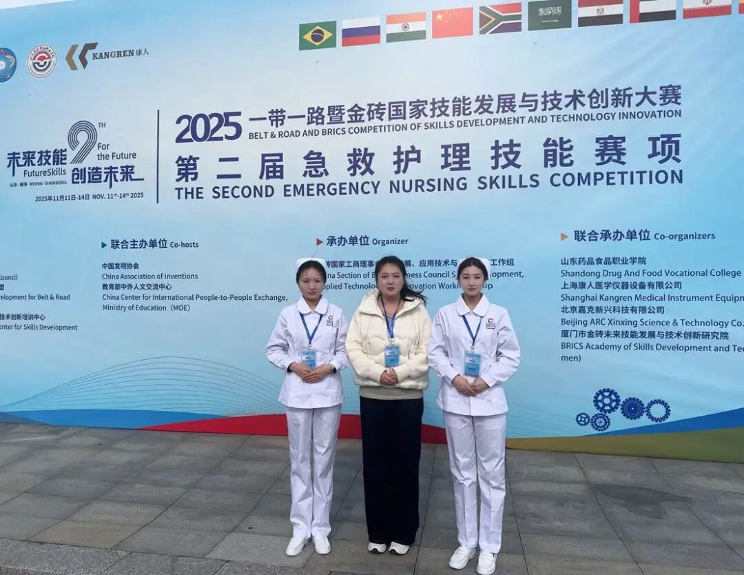 2025年11月10日至14日,2025一带一路暨金砖国家技能发展与技术创新大赛第二届急救护理技能赛项决赛在威海圆满落幕。本次赛事由金砖国家工商理事会中方理事会、一带一路暨金砖国家技能发展国际联盟等单位联合主办,是急救护理领域高水平国际赛事,吸引了全国70余所高校的团队同台竞技,以赛赋能急救护理教学与实践创新。 赛事聚焦,以赛验能 本次急救护理技能赛项紧扣临床急救实际需求,设置“急救理论知识考核、急危重症应急处置、急救团队协作”三大核心考核板块。赛事全程模拟真实临床急救场景,融入智能急救设备操作、多学科协作急救等前沿内容,既考验选手的专业实操能力、应急决策速度,也检验急救知识转化与教学应用的综合素养,为全国急救护理教育工作者搭建了交流学习、切磋技艺的高端平台。 全力护航,凝心备战 燕京理工学院对此次赛事高度重视,环境与健康学院护理教研室组建由韩雪荣、王芳、杨茜三位教师组成的参赛团队。学院领导统筹指导,明确“以赛促教、以赛提能”的备赛目标,协调各方资源为备赛提供全方位支持。超现代大健康产业学院倾力保障,专项划拨经费用于此次赛项。 备赛期间,三位教师开启“理论+实操”双线备战模式,白天拆解急救操作流程,反复打磨心肺复苏、除颤、心电监护、密闭式静脉输液等核心技能,力求动作精准规范;夜晚梳理理论题库,结合临床最新指南优化急救方案,同时模拟赛事场景开展团队协作演练,不断提升应急处置的默契度与高效性。 赛场竞逐,斩获佳绩 决赛现场,面对高强度的考核节奏与复杂的模拟急救场景,三位教师沉着冷静、配合默契。在成人案例分析、心搏骤停急救环节,他们精准完成评估、除颤、按压等一系列操作,动作娴熟流畅,充分展现了扎实的专业功底与出色的应急应变能力。 经过激烈角逐,燕京理工学院护理教研室教师团队,最终荣获大赛优秀奖,用实力展现了学校护理教育的过硬质量与教师队伍的良好职业素养。 以赛促教,赋能成长 此次参赛获奖,不仅是对三位教师专业能力与教学水平的充分肯定,更是学校深化“岗课赛证”融合、推动护理教育教学改革的重要成果。通过参与高水平国际赛事,教师团队拓宽了专业视野,精准把握了急救护理领域的技术发展趋势与教学改革方向,为后续优化课程体系、强化实践教学积累了宝贵经验。 未来,燕京理工学院将继续秉持“以赛促教、以赛促学、以赛促改”的育人理念,依托超现代大健康产业学院的资源优势,持续搭建教师技能提升平台,鼓励更多教师参与高水平赛事交流。不断强化师资队伍建设,深化护理教育改革,为培养高素质应用型急救护理人才、推动健康服务领域教育高质量发展注入更强动力。