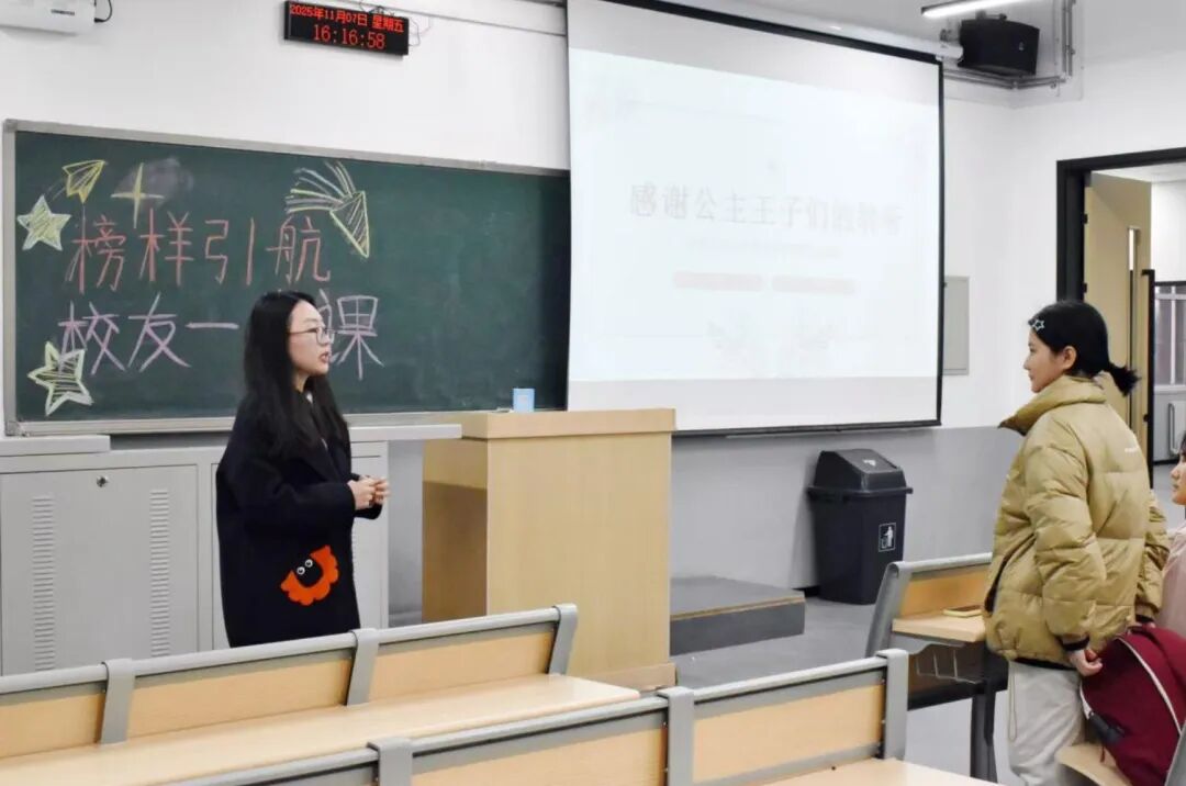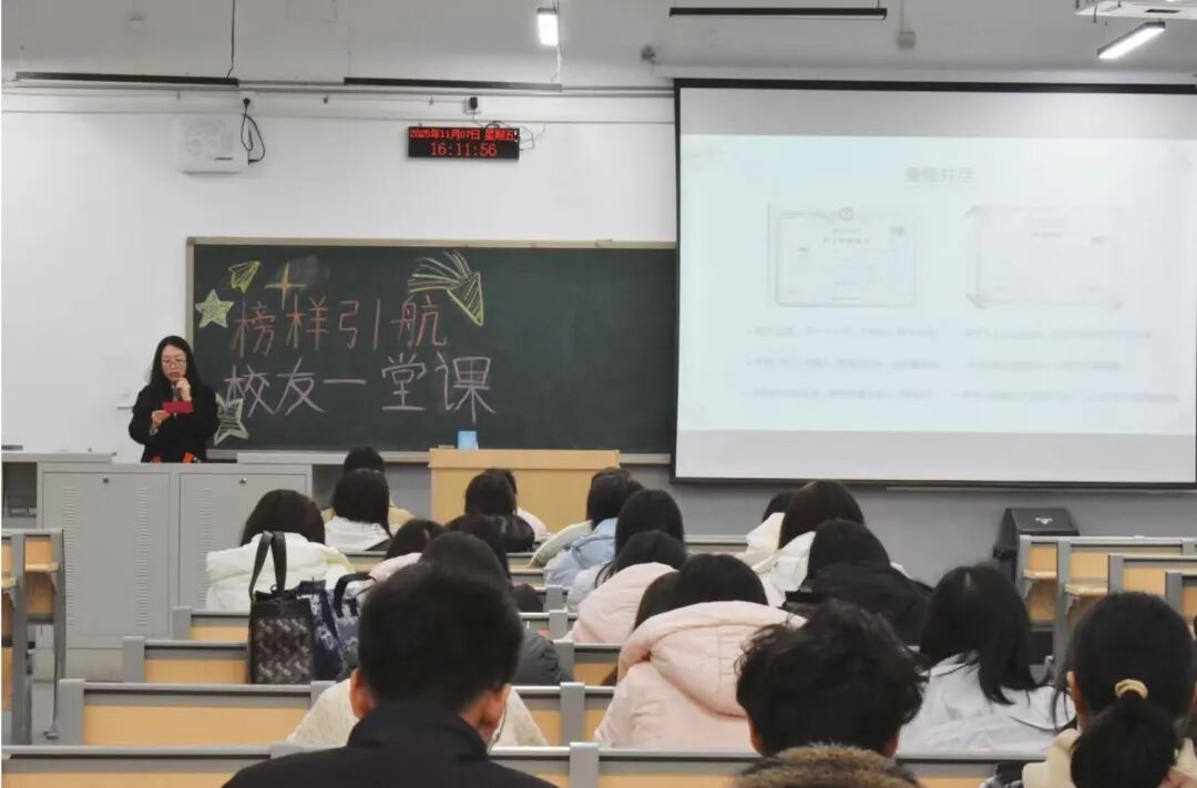 为深化育人实效,助力青年学子全面发展,2025年11月7日,我院2025届优秀校友田博思重返教室,在“校友一堂课”活动中倾情开讲。她通过“学术筑基-实践突破-职业进阶”三重方面的成长叙事,系统呈现了从专业学习到职场转型的完整路径,为在校学子勾勒出清晰的生涯规划图景。这场兼具思想深度与人文温度的分享会,既展现了新时代青年的责任担当,也为在校学子搭建了薪火相传的成长桥梁。 勤学笃行,筑牢学业根基。田博思学姐强调,大学期间需以“勤学笃行”为准则:她在校期间连续5个学期斩获奖学金,并获评“三好学生”荣誉称号;主动完成英语四级、普通话等核心证书的备考与考取。此外,她倡导跨学科学习,通过辅修课程打破专业壁垒,将跨领域知识积累转化为职场核心竞争力,为长远发展奠定坚实基础。唯有主动拥抱学习、持续精进,才能在人生的赛道上站稳脚跟,建议大家尽早厘清短期目标与长期方向:或深耕专业备战就业,或备考公务员服务社会,亦或继续深造攻读研究生。 跨界赋能,拓宽发展维度。针对跨专业学习的价值,学姐结合求职经历指出,辅修经历可在岗位竞聘中形成差异化优势,为职业选择提供多重保障。她建议理工科学生可辅修管理学、法学等人文社科类学科,以提升综合决策能力与多元思维模式,拓宽问题解决路径。她特别提醒,大学阶段是突破学科局限的黄金时期,应充分利用时光提升综合素养,挖掘自身发展潜力。需要在大学利用好时间,提升自己,大学是一个充满无限可能的阶段。 “证”满乾坤,积累成长底气。谈及证书考取,学姐提出“证”满乾坤,但并非盲目求量。备考英语四级时,她坚持每日背诵50个单词、定期完成真题演练,最终实现一次通过;考取普通话证书期间,利用课余时间系统学习发音技巧,纠正语音偏差。她表示,每一份证书都是持续付出的见证,当面临职业选择的关键节点时,这些积累将成为最坚实的支撑,付出终有回报,当你站在十字路口面临职业选择时,这些积累都将成为最坚实的后盾。 实践践知,彰显学习价值。学姐认为,以上这些荣誉不是终点,而是学院提供的机遇与自身不懈努力共同浇灌出的果实,更是我未来笃定前行的底气。真正体现学习价值的地方是在继续教育学院实习的实习经历,这些积极向上的力量一直在激励她不断进取。 她在此将大学所学理论知识与实际工作深度融合,在更广阔的平台上检验学习成果,实现了从知到行的跨越。现在绘制大学生活的画笔交到我们手中,用画笔填满勇气与坚持,她希望大家珍惜学校为我们提供的每一个成长平台,勇于付出勇于尝试。学姐还将自己最喜欢 的一段话送给大家:“不必慌忙赶路,终其一生我们始终在前行,纵使生活跌倒,也不必一味焦灼,苦难无法预知与改变,我们能做的,是在苦难降临时仍保持享受自由的勇气,怀揣坚定信念迈向远方,山不见我,我自去见山。” 最后,她还现场解答了同学们的提问,并衷心祝愿学弟学妹们前程似锦,向上向善;祝愿各位老师工作顺利,桃李天下;祝愿环境与健康学院未来愈发灿烂辉煌!这场兼具思想深度与实践价值的分享会,不仅展现了校友对母校深深的赤子情怀,更为为在校学生学业规划与职业发展提供了指导。