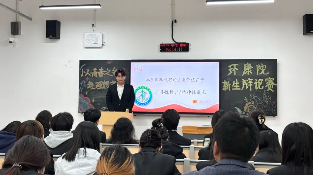为拓展学生国际视野,锤炼批判性思维与跨文化沟通能力,环境与健康学院于2025年11月2日在K1-101成功举办了一场以“以青春之名,赴理想之约”为主题的国际赛道辩论赛。本次赛事旨在搭建一个思想碰撞、智慧交融的高水平平台,引导青年学子关注全球性议题,以青春的智慧与激情,回应时代对复合型人才的呼唤。 在学院精心组织的辩论赛现场,气氛热烈而有序,思想火花激烈碰撞。本次赛事创新采用混合组队形式,由学院新生辅导员队伍与辩论社精英成员共同参与,同台竞技,展现多元视角与专业素养。紧密围绕当前教育领域的热点议题,兼具学术深度与现实关怀。核心辩题包括:“拓展国际视野会强化还是削弱一个人的民族身份认同与文化自信?”“对于提升个人竞争力,在国内顶尖院校读研是更务实的选择,抑或出国攻读硕士学位是更优的投资?”这些议题不仅引发深入思考,更促进了跨文化交流与学术对话。 赛场上,正反双方辩手们,意气风发。在立论、驳论、自由辩论及总结陈词各个环节中,他们或引经据典,数据详实;或逻辑缜密,层层递进;或妙语连珠,机智应变。流畅的语言表达、扎实的专业知识储备和敏锐的国际视角,充分展现了我院学子卓越的综合素养与心系天下的青年担当。 评委在总结点评中高度评价了选手们的出色表现,认为他们不仅展现了严谨的逻辑思维和敏锐的洞察力,更彰显了良好的学术素养与青年风采。辩论不仅是观点的碰撞,更是思维能力的锤炼与价值观念的塑造,为培养具有国际视野和批判精神的新时代人才提供了宝贵平台。 此次辩论赛的成功举办,有效营造了开放包容、勤于思考、乐于交流的校园文化氛围,为提升学生综合素质、推动跨领域人才培养奠定了坚实基础。