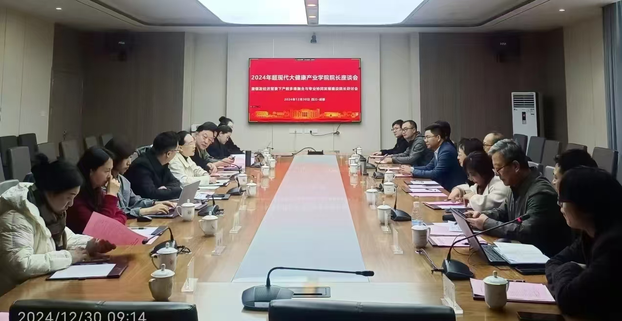 12 月 30 日,2024 年超现代大健康产业学院院长座谈会暨银发经济背景下产教多维融合与专业协同发展建设院长研讨会在成都文理学院成功举办。本次会议聚焦大健康产业发展,旨在推进产教深度融合,推动人才培养与专业建设协同发展。燕京理工学院环境与健康学院院长马登军、副院长刘军凯、护理学专业负责人张娟,应邀出席会议,分享学院经验并参与研讨。