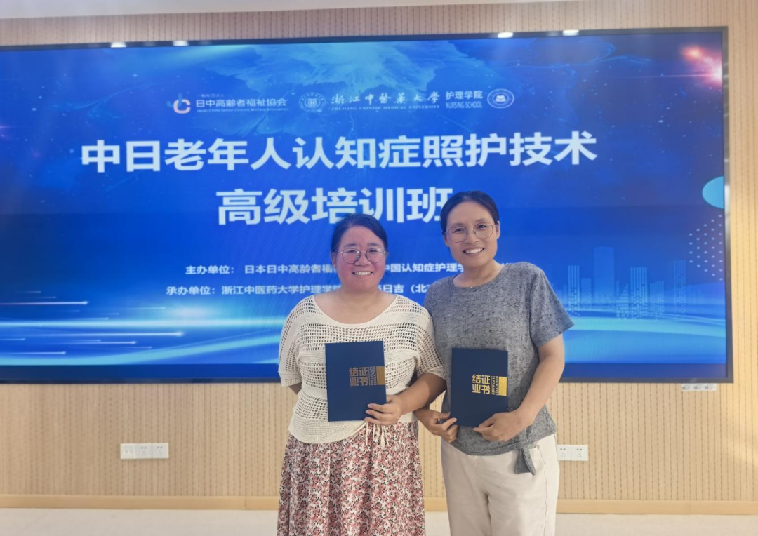 本次培训由日本日中高龄者福祉协会与中国认知症护理学会(HK)联合主办,浙江中医药大学护理学院与东海日吉(北京)教育科技有限公司共同承办,中日韩康养护理产教发展联盟协办,吸引了来自中日韩联盟成员单位、医养护机构管理者与护理骨干、护理院校师生等近百名专业人士参与。其中,环境与健康学院护理教研室的刘翠华和李伟丽两位老师作为教师代表,参与了此次培训。本次培训课程得到了环境与健康学院领导及产业学院的大力支持。 日本作为全球认知症照护领域的标杆,其核心优势成为本次培训焦点。培训特邀日本资深专家团队,系统梳理并倾囊相授其三十年实践验证的成熟体系精华,重点围绕三大支柱,深入解析“自立支援”理念,强调尊重患者自主性;详解“Group Home”小单元家庭式人性化环境设计与改造要点;传授精细化评估、精神行为症状(BPSD)应对、生活能力(ADL)支持、个性化照护计划制定等核心技术,并涵盖照护者压力管理与社会支持网络。 本次培训主要致力于“深度融合日本成熟经验与中国本土创新需求”。十二大课程模块设计精良,覆盖从早中期核心症状与BPSD管理、谵妄处理、安全约束,到晚期全程照护等全病程实践难点。 刘翠华和李伟丽两位老师积极参与各项培训课程,与中日权威专家及来自医养机构、院校同仁的深入交流,拓展了视野,为后续开展校企合作、课程改革与科研项目奠定了坚实基础。 能够参与此次培训,离不开环境与健康学院领导及产业学院的大力支持,为两位老师提供了宝贵的培训机会和资源,使她们能够在专业领域内不断学习和进步,两位老师表示希望把所学所悟的先进照护理念、核心技术及宝贵实践经验有机融入护理人才培养全过程,致力于推动认知症照护教育的本土化创新与发展,为提升我国老年健康服务水平贡献教育力量。