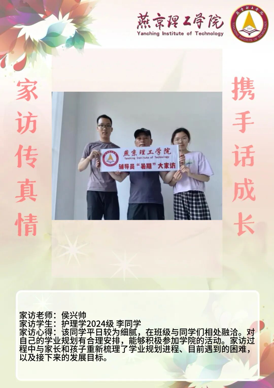 通过“大家访”活动,加强学校与家长的沟通交流,全面了解学生的成长路径与未来发展规划,用心用情解决好学生的实际问题,持续构建家校合力育人的良好局面,增强思想政治教育工作的针对性、实效性,促进学生健康全面成长成才。
