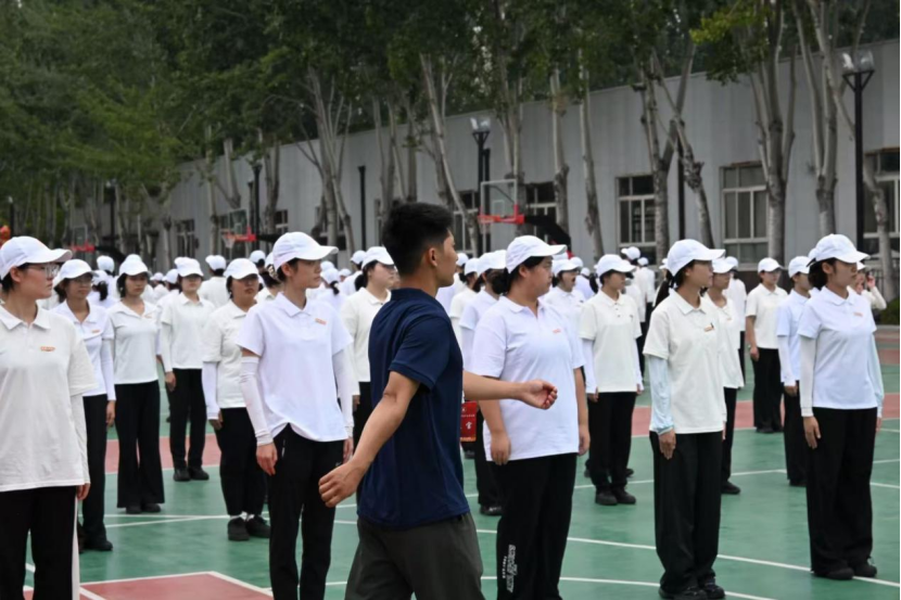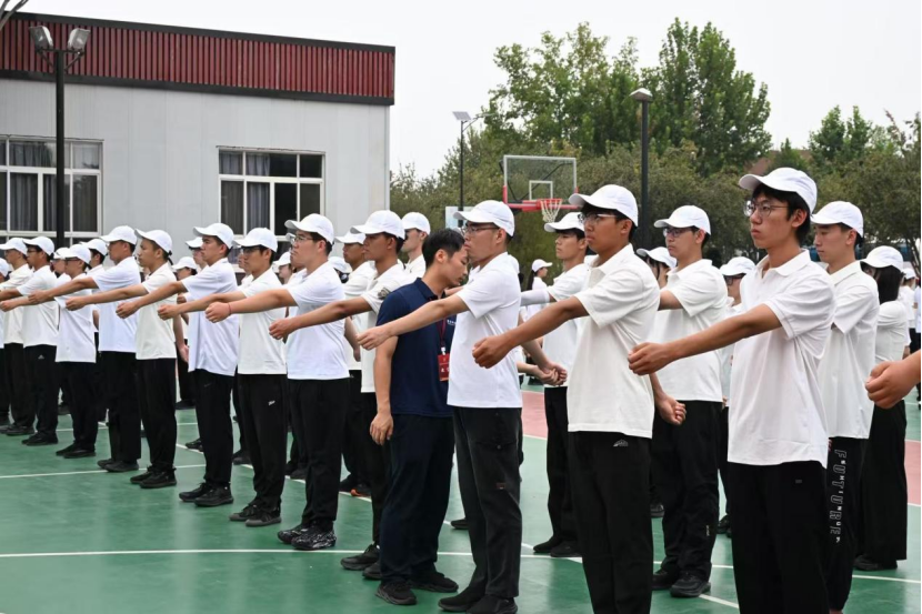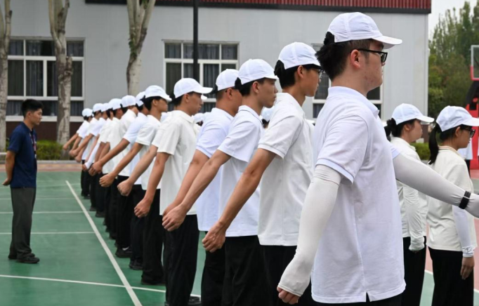 金秋九月,丹桂飘香,在这充满朝气与希望的季节里,环境与健康学院37连队的全体新生身着整齐的白色T恤,在操场举行2025年军训动员大会,37连的学子们以昂扬的姿态开启了为期两周的军训生活。这段时光里,汗水与笑容交织,疲惫与成长相伴,从基础军事动作的打磨到集体活动的协作,37连队的学子们用行动诠释着青春的热血与担当,在军训的熔炉中淬炼意志、凝聚力量。 一.基础训练夯根基,规范动作显风貌 军训伊始,基础军事训练便成为每日的“必修课”。站军姿、稍息立正、跨立、停止间转法……这些看似简单的动作,却是塑造军人姿态、培养纪律意识的基石。清晨的阳光尚未完全驱散凉意,37连队的新生们已在训练场上列队站好,目光坚定地注视着前方。“两脚跟靠拢并齐,两脚尖外分约60度;两腿挺直;小腹微收,自然挺胸;上体正直,微向前倾……”教官的口令清晰有力,每一个字都化作新生们调整姿态的标准。 站军姿时,汗水顺着脸颊滑落,浸湿了白色T恤的衣领,蚊虫在耳边嗡嗡作响,但没有一名同学轻言放弃。有的同学小腿发酸,便在心里默默给自己打气;有的同学肩膀僵硬,仍尽力保持上体的挺拔。“坚持住,这是对意志的考验!”教官的鼓励如同强心剂,让大家咬紧牙关,在坚持中感受军人的坚韧。经过数日的反复练习,37连队的队列愈发整齐,无论是稍息立正时的干脆利落,还是停止间转法时的动作统一,都展现出新生们扎实的训练成果,也让“纪律”二字深深烙印在每个人的心中。 军训过后,内务整理是新生的重要必修课。在教官指导下,37连学子从叠“豆腐块”被子学起,压被角、抠线条,反复调整直至棱角分明;桌面物品摆放成线,洗漱用品统一朝向;地面清扫无死角,衣物叠放整齐入柜。从生疏到熟练,从杂乱到规整,内务整理不仅锻炼了大家的耐心与细致,更让纪律意识融入日常,展现出学子们严谨认真的军训态度。 二.创新教学促提升,四步立定见真章 在基础训练中,“立定”动作看似简单,却对节奏感和协调性有着极高的要求。为了帮助新生们精准掌握动作要领,37连队的教官创新教学方法,推出了“四步立定法”,并亲自手把手指导每一位同学。 “第一步,听到‘立定’口令后,左脚向前大半步着地;第二步,右脚迅速靠拢左脚,两腿挺直;第三步,上体保持正直,两臂自然下垂;第四步,目光平视前方,恢复立正姿势。”教官一边分解动作,一边示范讲解,每一个步骤都清晰明了。随后,教官走到队列中,逐一对新生进行指导:“你的左脚迈出幅度不够,再大一点”“右脚靠拢时速度要快,不要拖沓”“注意上体不要晃动,保持稳定”。 对于动作不够标准的同学,教官耐心纠正他们的姿势,手把手调整腿部的角度、身体的重心。新生们一开始总是难以把握四步的节奏,教官便单独带他反复练习,从慢动作分解到连贯动作衔接,直到他能够熟练完成。“原来立定还有这么多讲究,教官的指导让我一下子就明白了!同学感慨道。在教官的悉心教导下,37连队的新生们不仅快速掌握了“四步立定法”,更在这一过程中感受到了教官的严谨与负责,也培养了精益求精的态度。 三.踢正步练分列式,磨砺意志展风采 如果说基础训练是“量变”的积累,那么踢正步和分列式排练便是“质变”的升华。踢正步作为军训中难度较大的科目之一,对动作的规范性、协调性和整齐度要求极高。“踢正步时,脚尖要绷直,脚掌与地面平行,离地面约25厘米,向前摆臂时,肘部弯曲,小臂略成水平……”教官详细讲解动作要领,随后带领大家进行分解训练。 先练踢腿,新生们单腿站立,另一条腿按照标准姿势抬起,保持数秒后再换腿,不少同学练得腿部发麻,但依旧咬牙坚持;再练摆臂,大家双手握拳,按照节奏前后摆动,确保手臂的高度、角度一致。分解训练结束后,便是连贯的踢正步练习。“一二一,一二一……”响亮的口令回荡在训练场上,新生们迈着整齐的步伐,脚步声铿锵有力。 分列式排练则是对前期训练成果的综合检验。为了在最后的汇报表演中展现37连队的最佳风貌,大家反复打磨每一个细节:从队列的整齐排列,到步伐的统一节奏,再到转头的角度、摆臂的幅度,都力求精准无误。训练过程中,难免会有同学出现步伐错乱、动作不标准的情况,但大家从不气馁,而是互相提醒、互相帮助。“你的步伐再快一点,跟紧前面的同学”“转头的时候要迅速,不要犹豫”……在一次次的磨合与调整中,37连队的分列式队伍愈发整齐划一,展现出强大的凝聚力和向心力。 四.文体活动添活力,团结协作凝人心 军训生活不仅有紧张的训练,还有丰富多彩的文体活动,为枯燥的训练增添了别样的活力,也让新生们在互动中增进了解、凝聚团结的力量。 军训休息期间,37连队的新生们化身“设计师”组队制作连队专属海报,大家一起分工合作。一幅海报以“盛世华诞”为主题,融合海陆空军人、国旗与天安门元素,铭记抗战历史,喜迎校庆,彰显家国情怀与军训担当。另一幅海报以“盛世如画,山海河鸣”为主题,融合军人敬礼、学子风貌与城市元素,展现军训热血与家国情怀,两幅海报由37连队倾心制作。 拔河比赛则将团结协作的精神展现得淋漓尽致。比赛当天,37连队的参赛队员们早早来到赛场,摩拳擦掌,做好了充分的准备。随着裁判的一声哨响,比赛正式开始。队员们紧握绳子,身体后倾,使出浑身力气往后拉,脸上的青筋微微凸