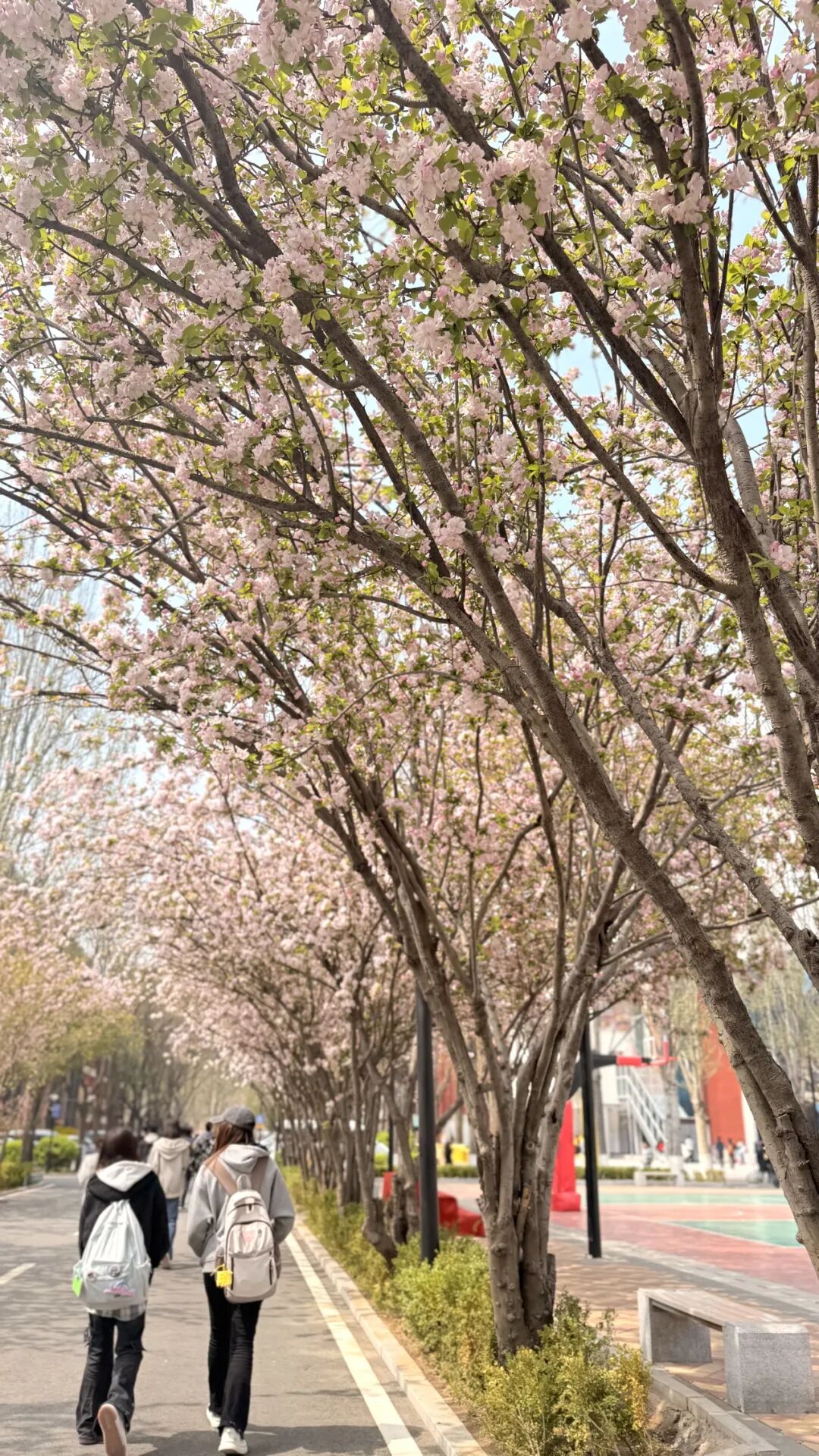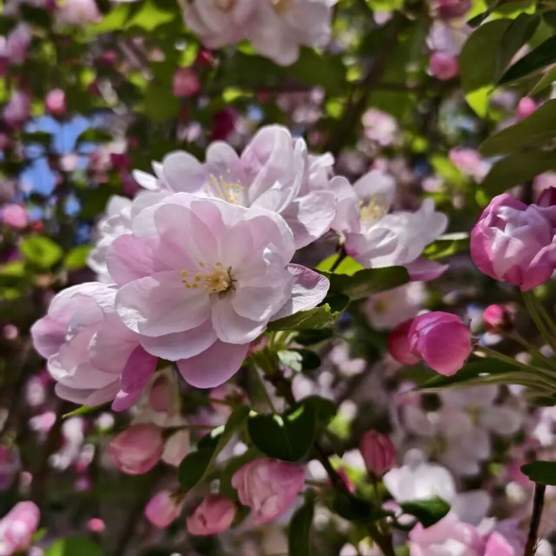 海棠美景 海棠,是春日里最温柔的一抹惊鸿,素有 “花中神仙”“国艳” 之誉。它不似桃李那般张扬喧闹,也不若牡丹那般华贵浓烈,只以温润的粉白、嫣红缀满枝头,花瓣轻柔如纱,或垂丝轻袅,或含笑半绽,自带一份含蓄端庄、温婉动人的气韵。 春风拂过,花影婆娑,似美人低眉,暗香浮动。从古至今,海棠都承载着文人墨客的深情与眷恋,藏着思念、温和与高洁的心意。它静静绽放于庭前院下、校园路旁,不与群芳争艳,却用一场盛大而温柔的花事,温柔了整个春天,也惊艳了岁月时光。 春至・棠开01 春风裁细柳,海棠染庭芳。 粉胭缀枝桠,芳影映轩窗。 这抹从千年词章里漫出的嫣红。 是校园藏不住的春信, 是学府揉进风的诗行。 海棠大道 赏棠・品韵02 枝间棠色,万般风情 或垂丝袅袅, 轻沾晨露,温婉如诗。 或芳蕊亭亭, 斜倚暖阳,秾丽如画。 晨光里,与教学楼檐角相映成趣。 暮色中,伴图书馆灯火暗香轻扬。 一瓣飘落,便将春日浪漫。 悄悄写进少年的书页与时光。 品棠・知意03 海棠自古入诗肠, 千载风华韵未央。 东坡秉烛赏芳艳, 易安怜花叹红妆。 玉堂富贵藏吉愿, 风骨内敛蕴温良。 花中神仙的雅致, 君子如玉的端方。 都凝在这一树繁花, 岁岁年年,绽满学堂。 赴棠・惜春04 趁春风正好,趁棠花正芳。 赴一场校园海棠之约。 揽一怀春色,沐一身花香。 不负花期,不负年少韶光。 让青春与海棠, 共写这一季最美的篇章! 海棠花开